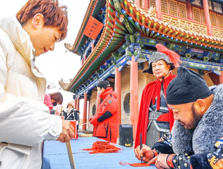 “雄关迎瑞 欢度新春”。春节假期,嘉峪关关城景区组织开展寻宝探秘、关长赐福等多项互动活动,在欢声笑语中为游客送上新春祝福。